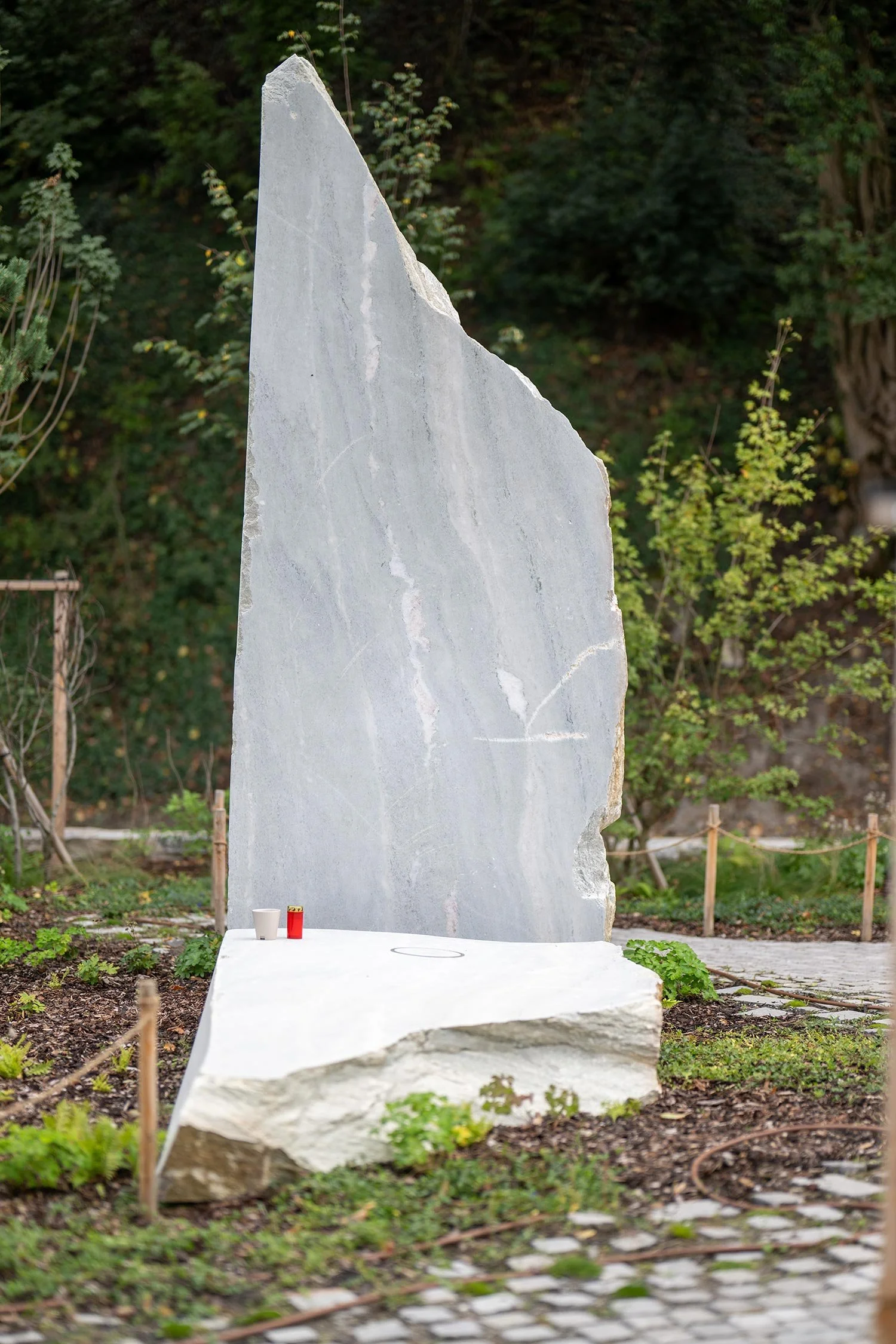 Le projet propose la mise en place d’une pierre issue de la carrière de St-Léonard sciée en deux. Ces deux pierres jumelles expriment la symbolique de la dualité entre la vie et la mort, mais également la déchirure entre le corps et l’esprit. Les deux faces obtenues révèlent une symétrie presque parfaite.